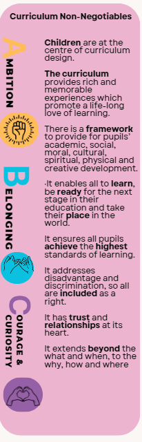 We ensure over the course of a child’s journey with us, they will have spent happy days experiencing a range of opportunities. As a result, children will gain a rich cultural vocabulary and knowledge to prepare them extremely well for secondary education and beyond.