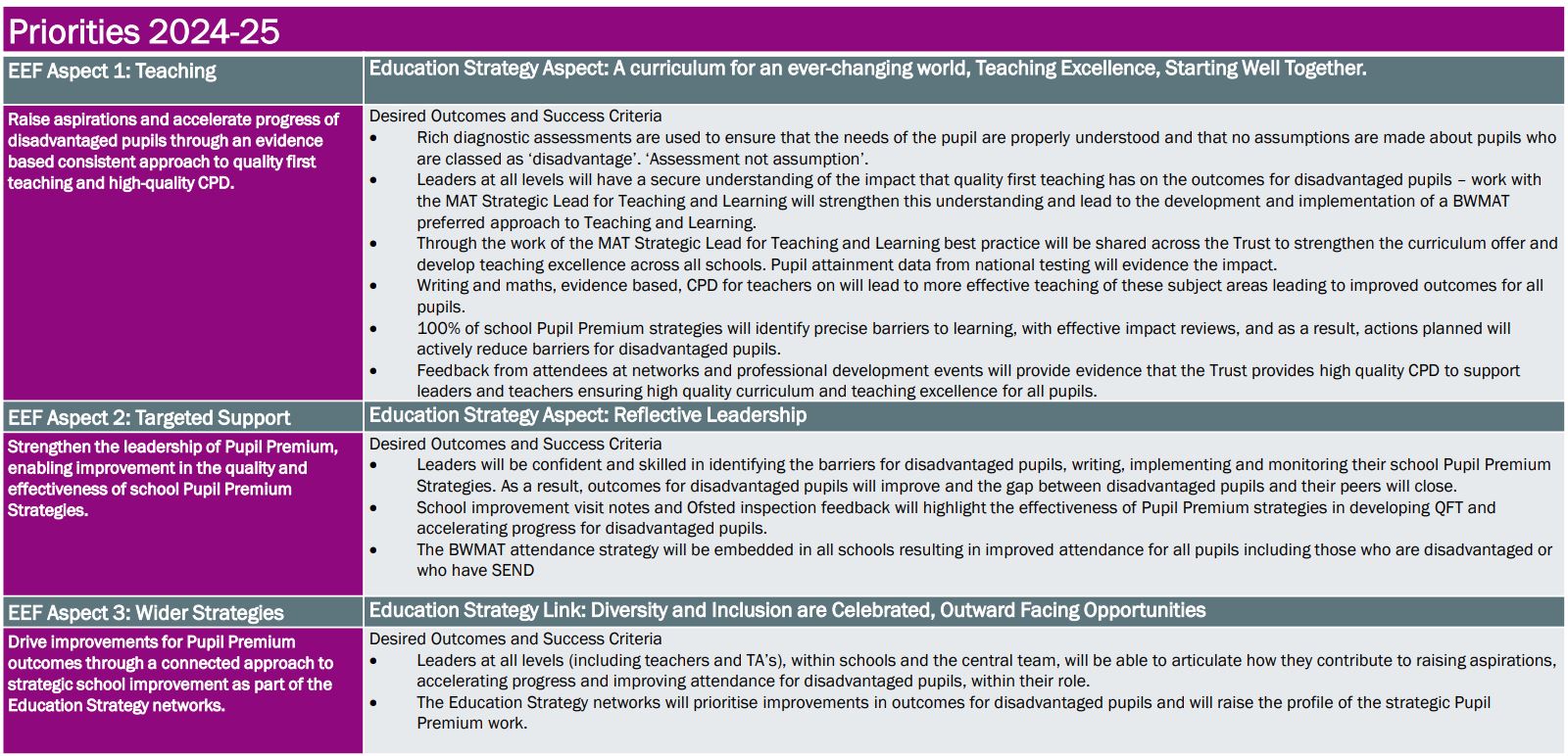 - Improve academic outcomes for disadvantaged pupils across the MAT.