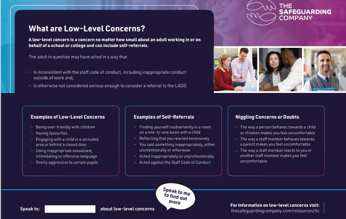 Low-level concerns are part of a spectrum of behaviour. This includes: