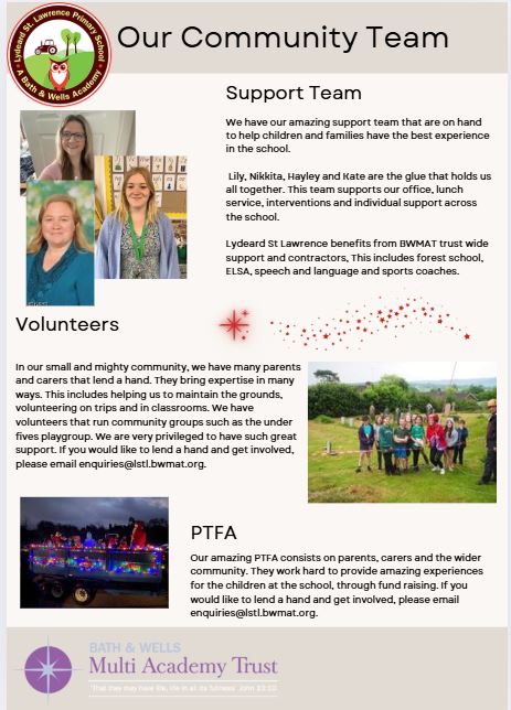 Mrs Hayley Slade - Admin Assistant Mr Jack Murphy -Site Manager Mrs Michelle Walsh - Cleaning team